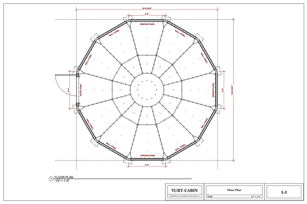 With solid walls, an integrated flooring system, real insulation, house windows, roundwood frame and rafters, and a wood ceiling with a tongue and groove look, this Yurt-Cabin has a distinctive log cabin feel. It is engineered for strength and longevity, and assembly is easy with the Yurt-Cabin’s built-in floor system and bolt-together design.