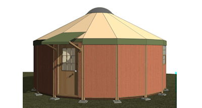 The 16-Wall Yurt-Cabin model can easily accommodate a bedroom, bathroom, kitchen, and living area. See an example floor plan in the “Floor Plans” tab. Looking for a bit more space for full-time living? Consider upgrading to the 18-Wall Yurt-Cabin.