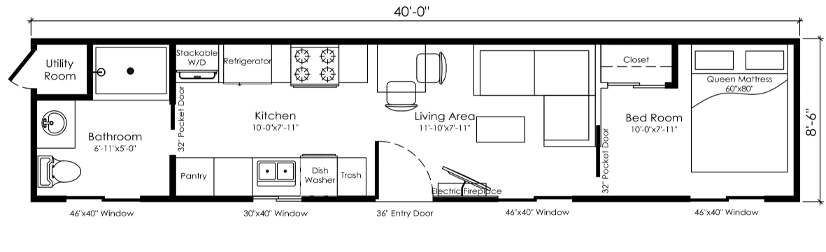 The Forty Foot Model is a 40′ tiny house on wheels that has been pre-engineered and designed by Back Porch Homes to be permitted as an alternative dwelling unit (ADU) in California and beyond. It’s the big brother to the Thirty Foot Model.