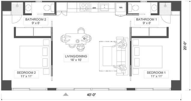 Designed to make the most of a typical 50-foot-wide lot, our ADU 800 has five variations: a loft, 1- and 2-bedroom options, and 1-bedroom plans with an office or den.