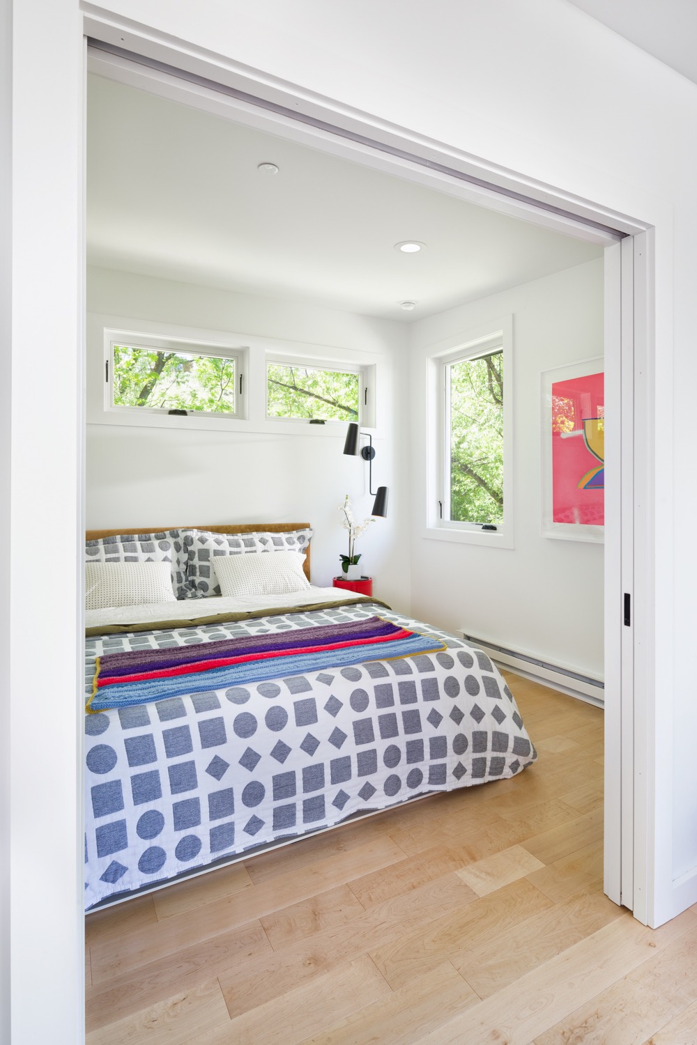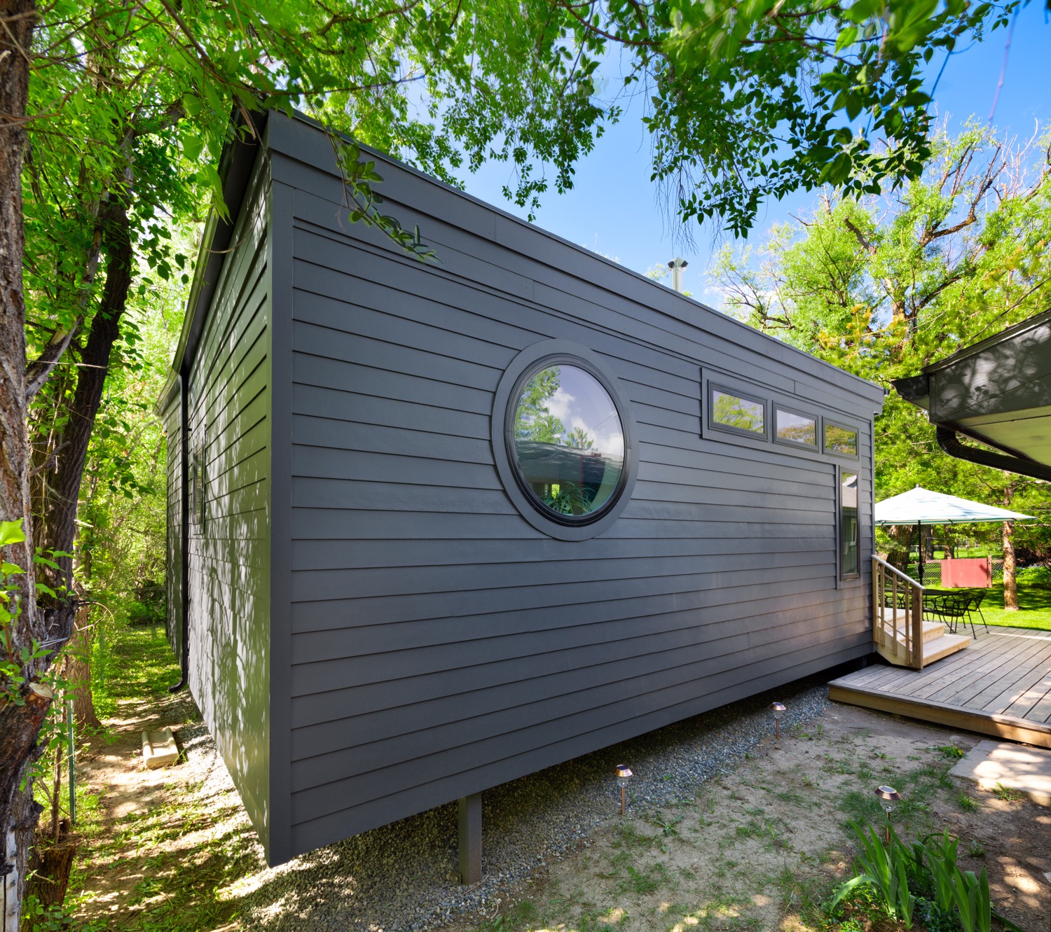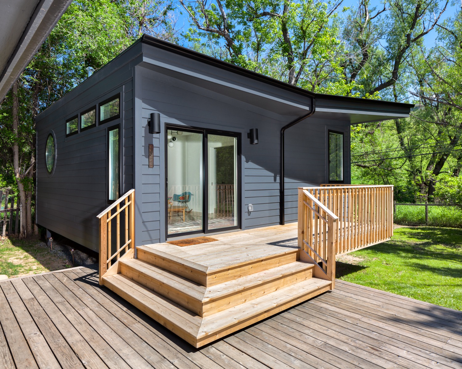 This accessory dwelling unit perfectly demonstrates a way to expand a home’s square footage creatively; in this case, our clients created a guest house including a bedroom, living area, and full bathroom with artsy Boulder flare. Having an ADU that includes a bedroom and living room gives these clients extra space to host guests or create a flex space such as a home office or art studio.