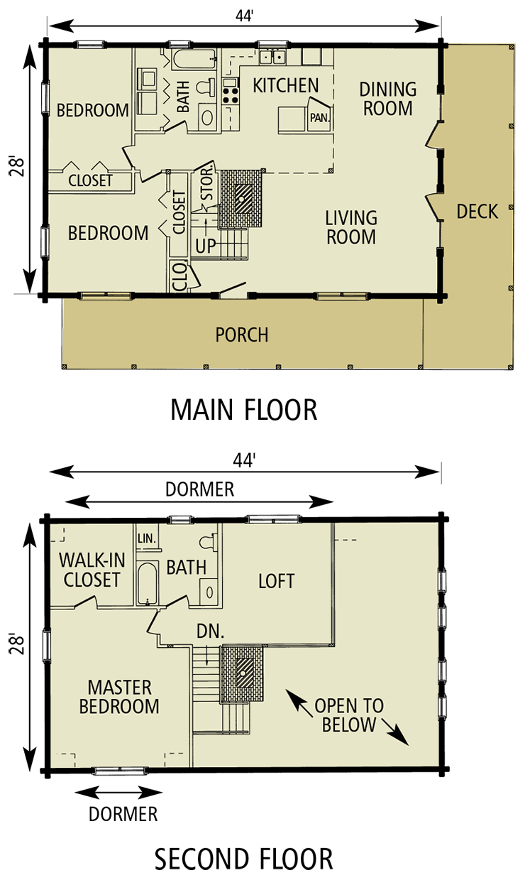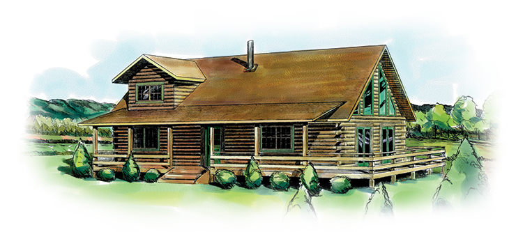 The Berkeley log home is a one and one half story charmer and incorporates many stylish features in a compact economical framework. It has three bedrooms, two bathrooms, and an open living space featuring open beam cathedral ceilings. The upstairs bedroom is enhanced by an extra large dog house dormer for additional headroom, a roomy walk in closet and large bath. A double set of full glass doors bring in natural light, open from the dining and living areas to an extra large deck, so living space can easily be expanded to the outdoors. Add a swing and the full front porch of this log cabin provides a perfect place for reading, sleeping and dreaming.