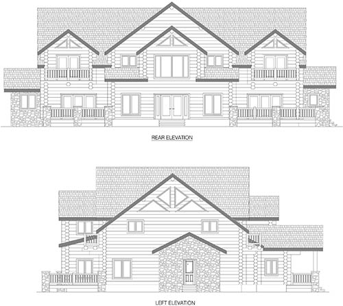 Gun-stock posts and massive timber trusses overhead greet visitors at the covered entryway. A grand foyer leads directly into the great room, kitchen and dining area, including striking windows to take in your view. At days end, the master suite is mere steps away. The master has its own fireplace and has its own deck. Upstairs two full baths and four more bedrooms await, each bedroom equipped with its own balcony for taking in the great outdoors. The Berkshire is a great design for those wanting a spacious, elegant home.