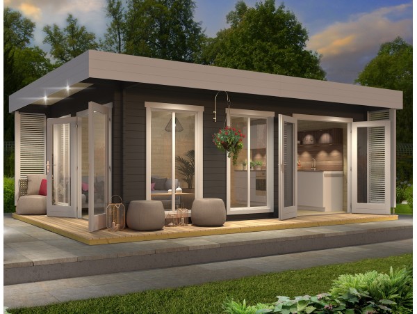 Imagine having a mini resort in your own back yard or patio. Now you can make it a reality with the new Allwood Bonaire resort styled cabin kit. Bonaire is an ideal poolside recreation center for the whole family, a clubhouse to entertain your guests, an oasis to relax in after a day of work. Or it can be a remote office that you actually like to work in. Like all of our cabin kits, Bonaire is made from high quality solid Nordic spruce wood. This timeless design compliments any type of surroundings. Versatile Bonaire can also be set up on rooftops of multi story buildings. Assembly of this solid wood structure takes about 5 full days for two handy adults. Do it yourself directions come with the kit in the form of numbered drawings and corresponding parts list, and only minimal tools are needed. Please note that the lighting and furnishings in the listing images are not included and are design suggestions only. Please note that shipping only applies to the contiguous 48 states. Any required ferry trips or difficult terrain are the full responsibility of the buyer.