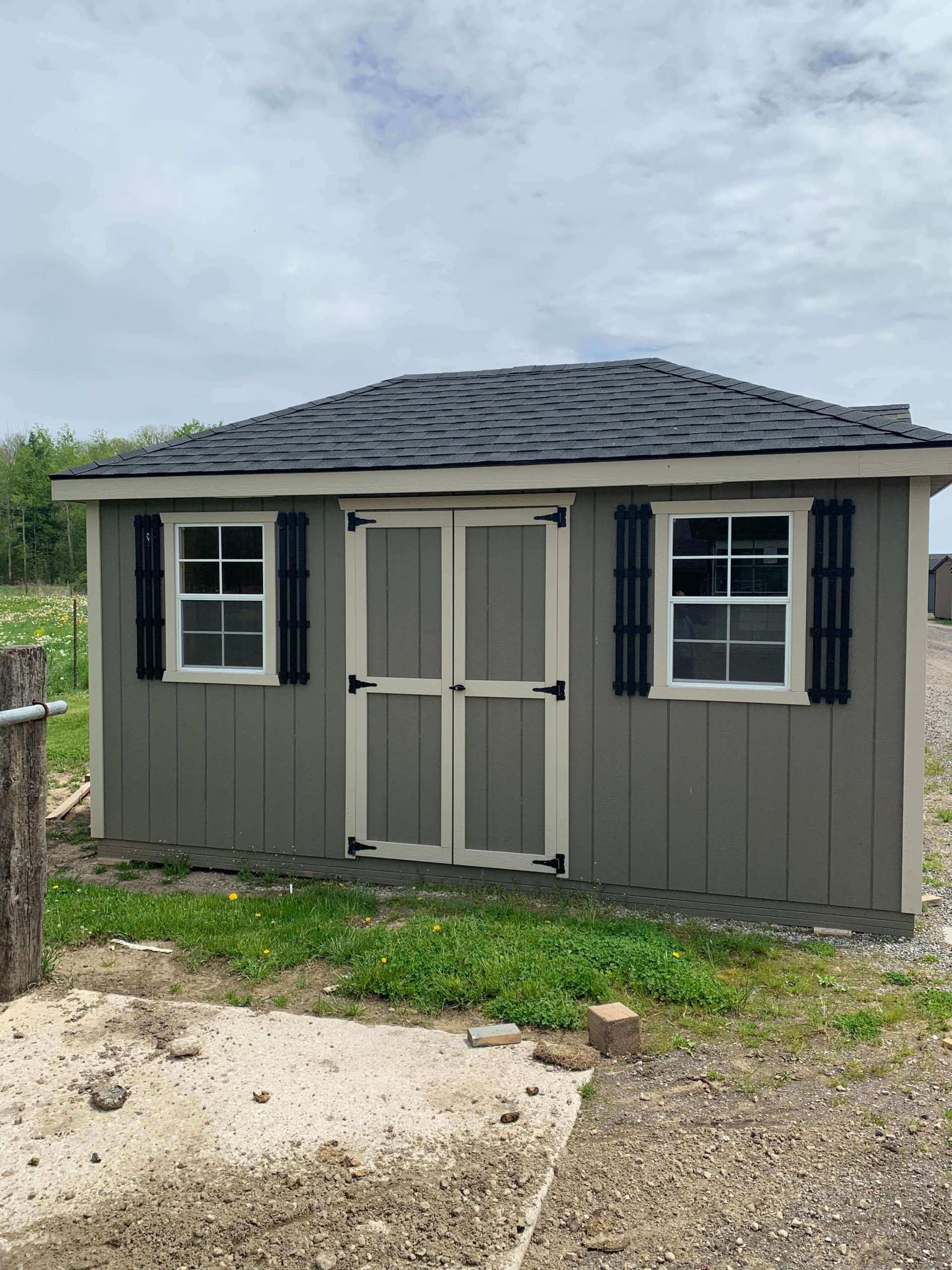 Cottage includes 6’4 1/2″ walls with double swing doors (47″ opening) or one single door up to 36″ wide. Two 6 lite or aluminum windows. One regular roof vent. Wider doors available, see extras. 7′ walls add 8%, 8′ walls add 15%.
