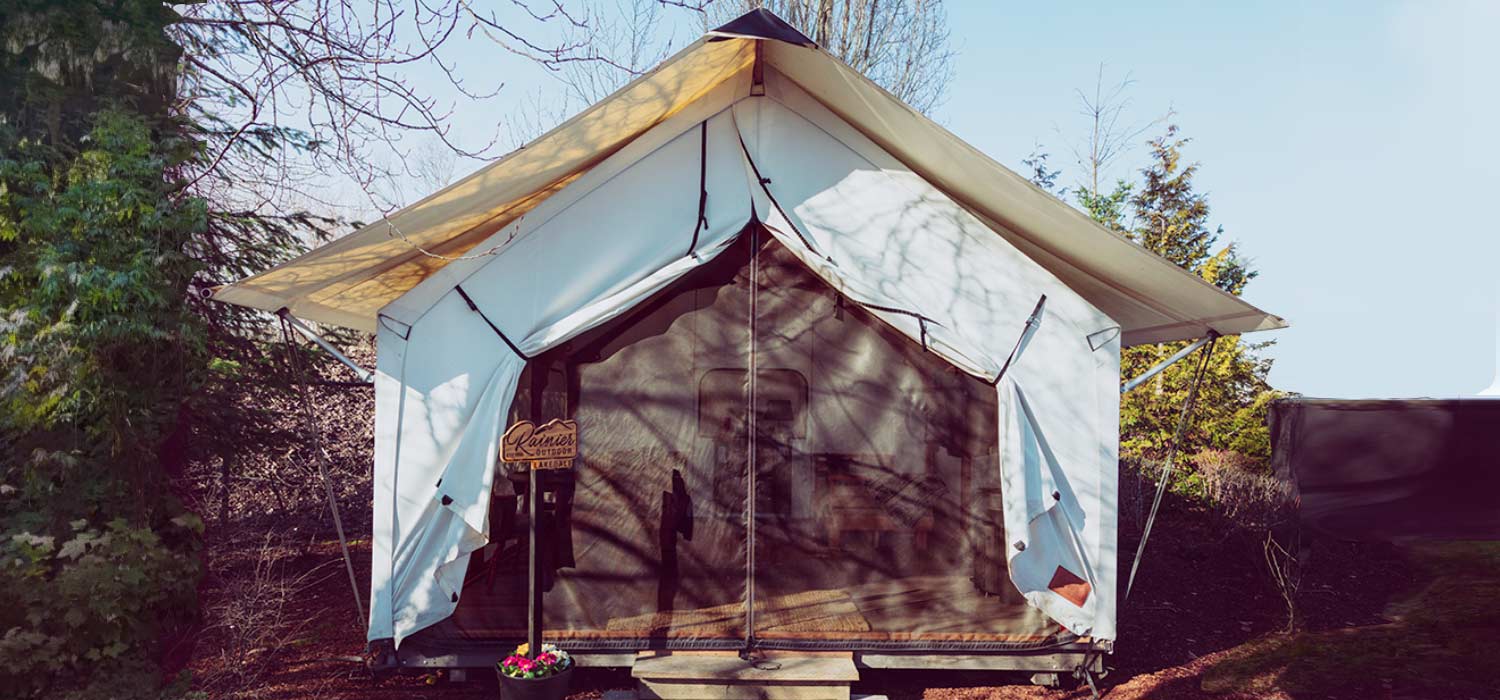Try out a Rainier Cottage! Yup, pack up the family and head out to Lakedale Resort in Friday Harbor, Washington to rent a cottage. They have our Rainier Cottages available for rent on their 82 acres of land that is surrounded by three lakes on beautiful San Juan Island. Lakedale offers an upscale, unique family ‘glamping’ experience in Rainier Outdoor Cottages. Each Rainier Cottage is 225sqr feet and features a queen-size bed, cotton sheets, pillow-top bedding, thick pillows and a flannel duvet. This is glamping Rainier Outdoor style!