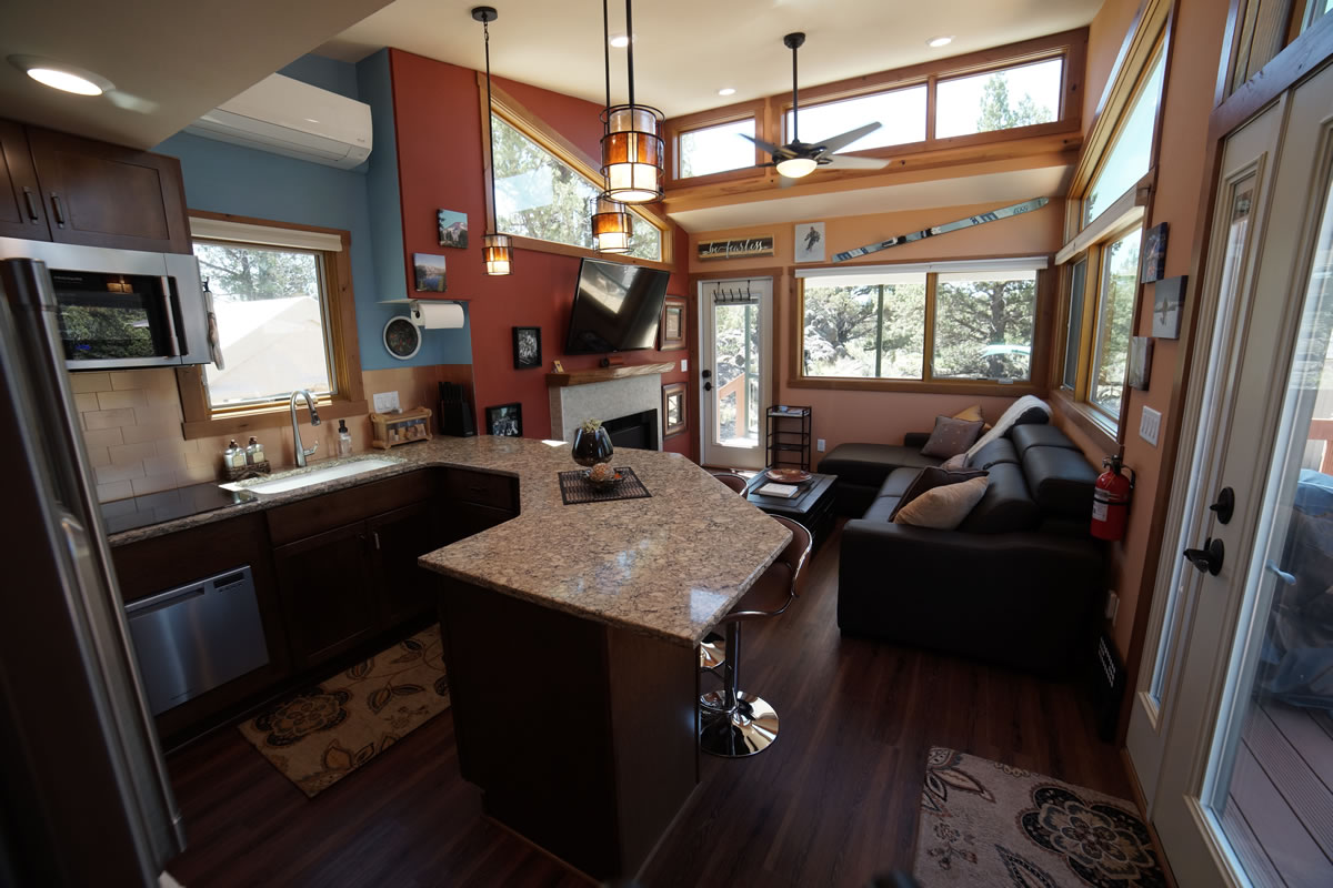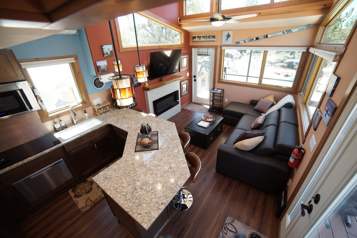 Utopian Villas’ Denali park model tiny home is designed to be the perfect home away from home, an ideal respite from the daily grind. Clocking in at 400-square-feet, the Denali tiny house gives you all the room you need, with luxury amenities for the whole family.