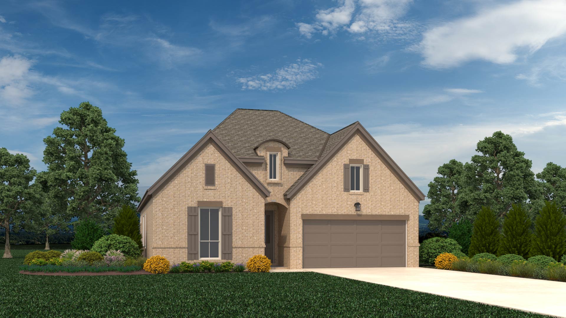 As you step inside the Dogwood, you’re greeted with soaring 10-foot ceilings. From the foyer, the spacious single-story home transitions to a large dining room and family room, which overlook the outdoor patio and are open to the kitchen. The kitchen features a large island, long walk-in pantry and generous counter space. Just off the family room is the owner’s suite, with a private bath with jetted tub, and a huge walk-in closet. The other bedrooms and a full bath are located just off the foyer. Options for the Dogwood include a second-level game room with powder bath, or a fourth bedroom and full bath, a bay window or euro shower in the owner’s retreat, an extended covered patio, an outdoor patio fireplace, or an extra five-foot storage space in the garage.