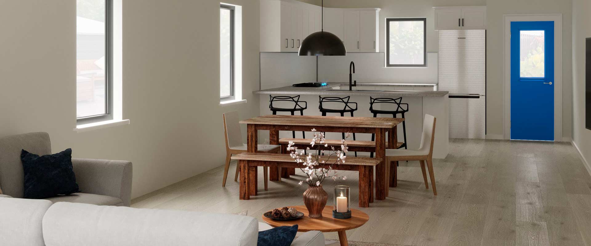 The EcoRanch strikes the perfect balance of performance and allure. Ranch style living and modern luxuries combine to create a home with contemporary appeal and classic charm. With its 2 or 3 bedrooms, 2 bathrooms, and 1,144 – 1400 sq. ft., this prefab home adds vitality to any landscape. Add in the highest levels of energy efficiency and you have a home that is the perfect getaway or permanent residence for a growing family, empty nesters, or young millennials.