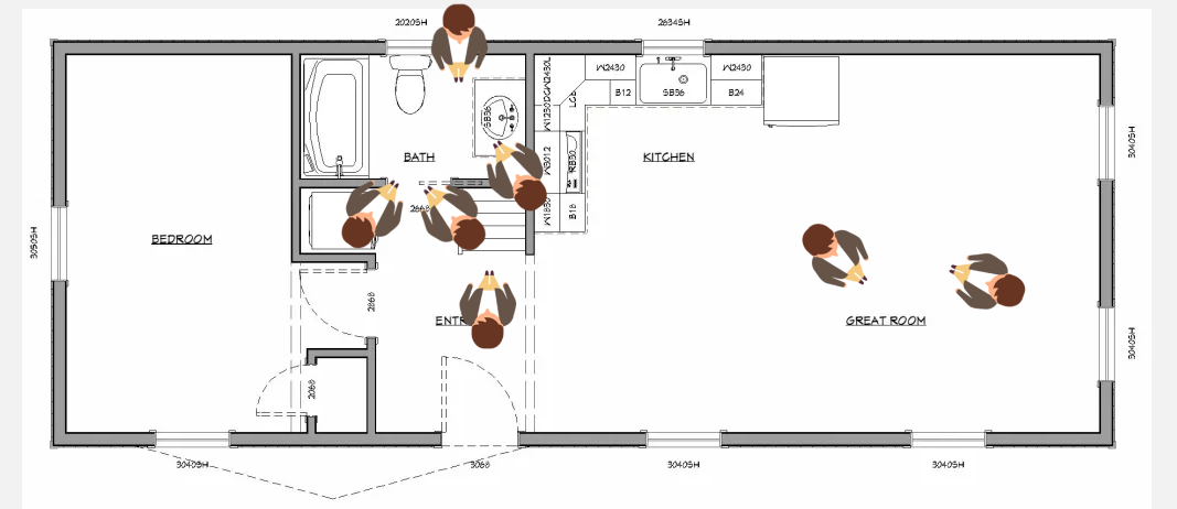 The G120 has the same features as the G100 with the addition of a gable dormer and shed dormer in the loft to give greater headroom. This loft provides a great place for a second bedroom, TV room, or play area for kids. This cabin has a welcoming front porch. As you enter, there is a great room with a vaulted ceiling. Its kitchen has a double stainless steel sink, real hickory cabinets, and a good counter space. The bathroom has a vanity, toilet, shower, and washer/dryer hookup. In the back of the cabin is a spacious bedroom with shelves and a closet. Sizes from 14’x32′ to 16’x54′.