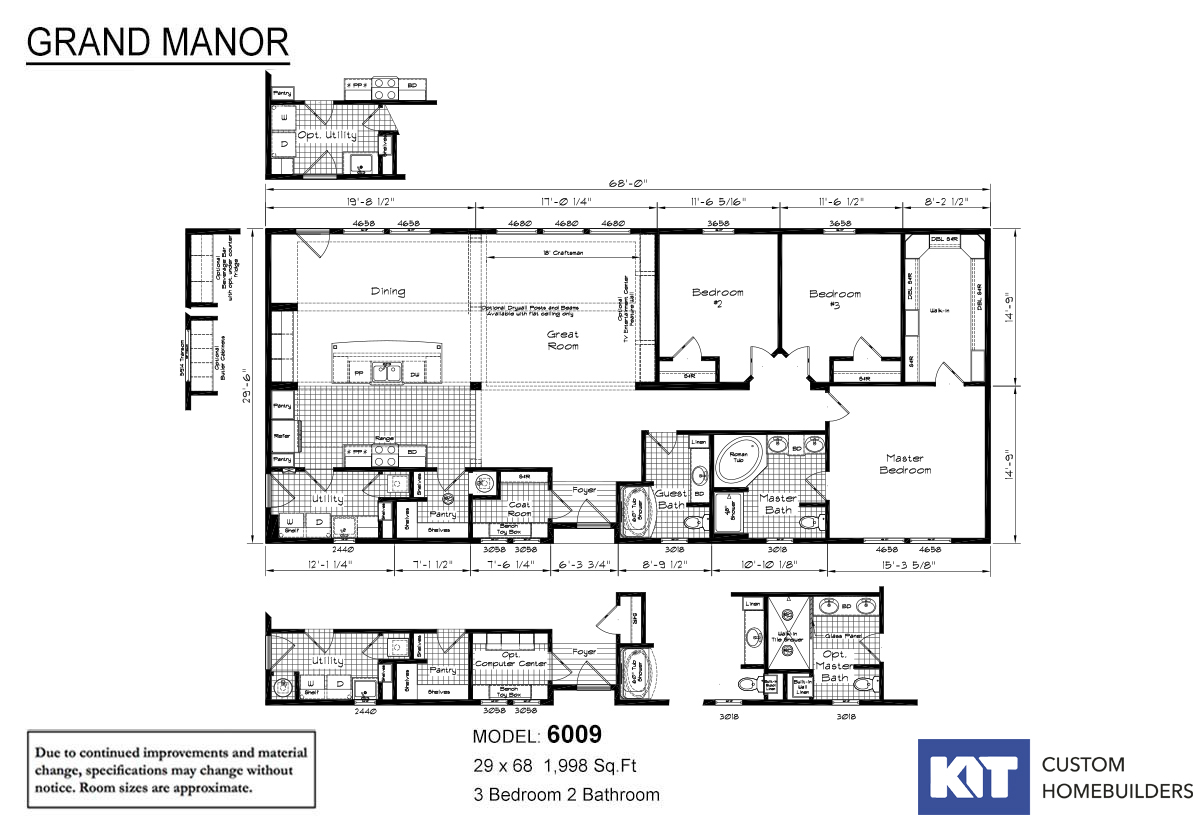 This Grand Manor Signature floor plan features an optional 9’ high, flat open-beam ceiling, ample windows that provide excellent natural lighting, interior barnwood accent colors, kitchen pot filler faucet, a glass panel walk-in tile shower with body massage faucet, entertainment center, beverage center, and much more!
