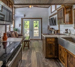 The Grande is a comprehensive tiny home floor plan and extremely practical for couples or small families. This floor plan package features elegant interior finishes, high ceilings with recessed lighting in the living area creating extensive space to enjoy each other’s company.
