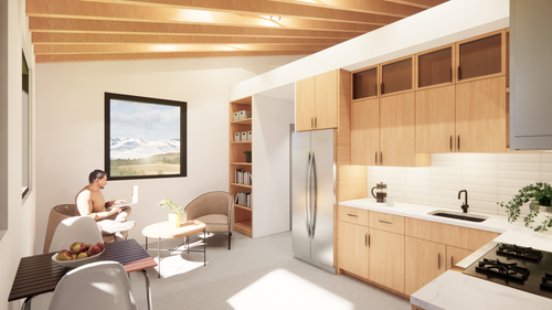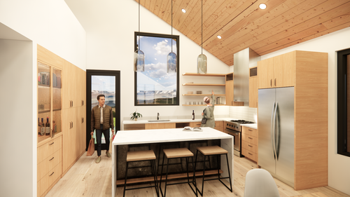 Truly a mountain ski cabin, with room and flexibility for up to 10 occupants, featuring architectural grade Doug Fir glulam ridge beam and posts…this design speaks to high performance construction in the mountains.