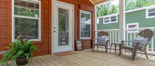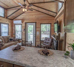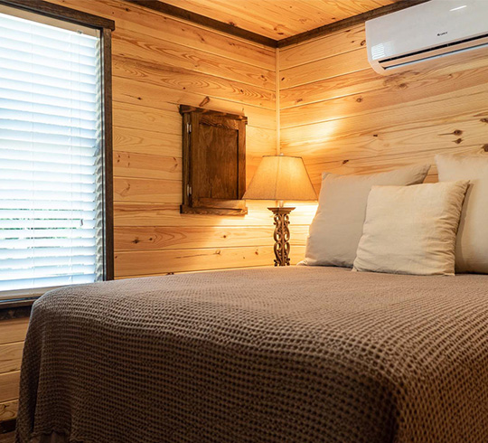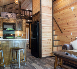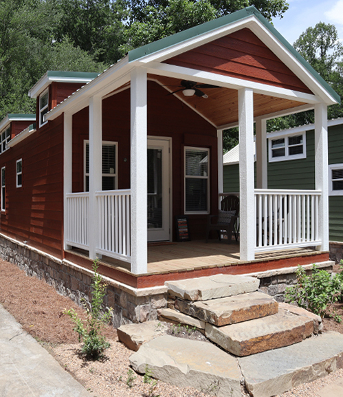 The Horseshoe is one of our most unique tiny home floor plans. This floor plan package features high-end interior finishes, recessed lighting and vaulted ceilings in the living area, creating an inviting atmosphere.