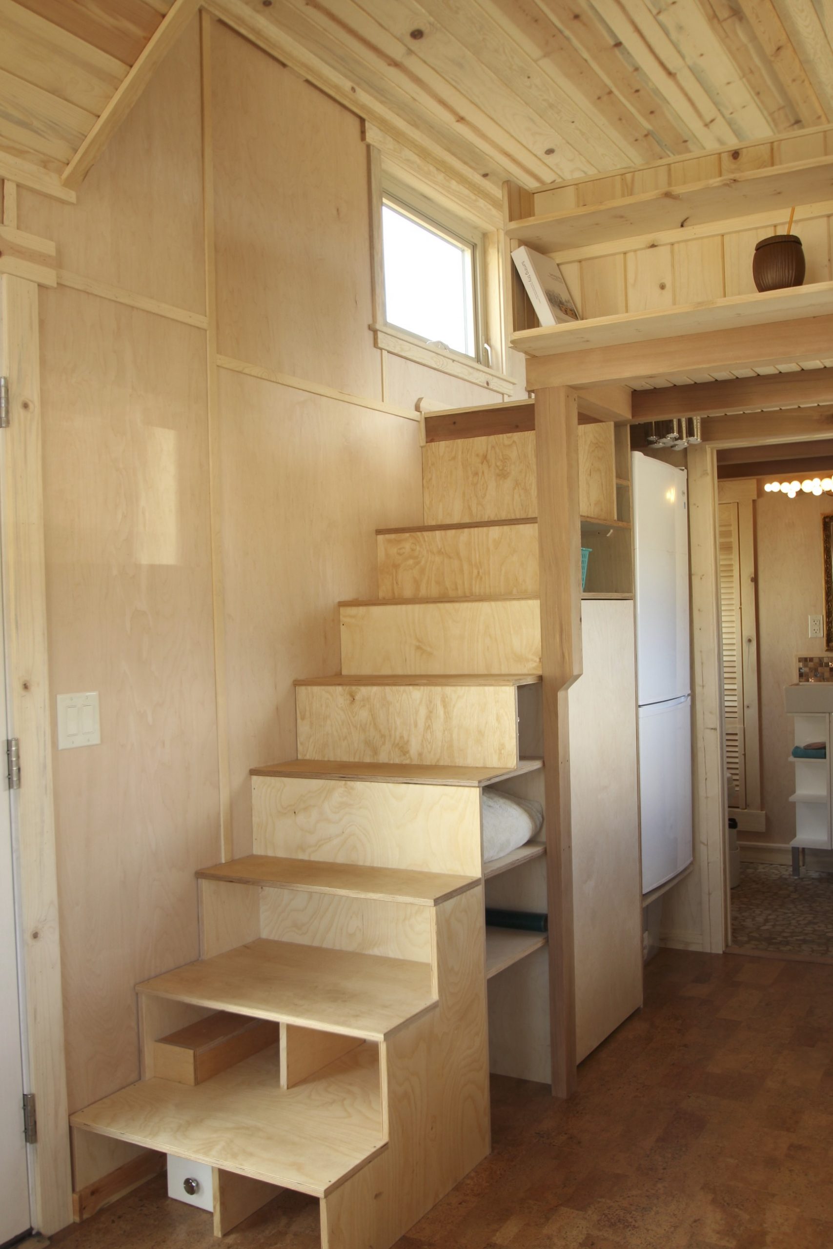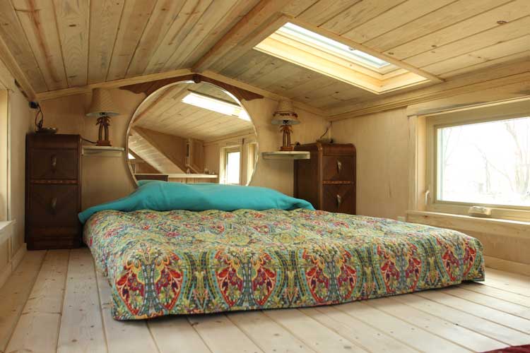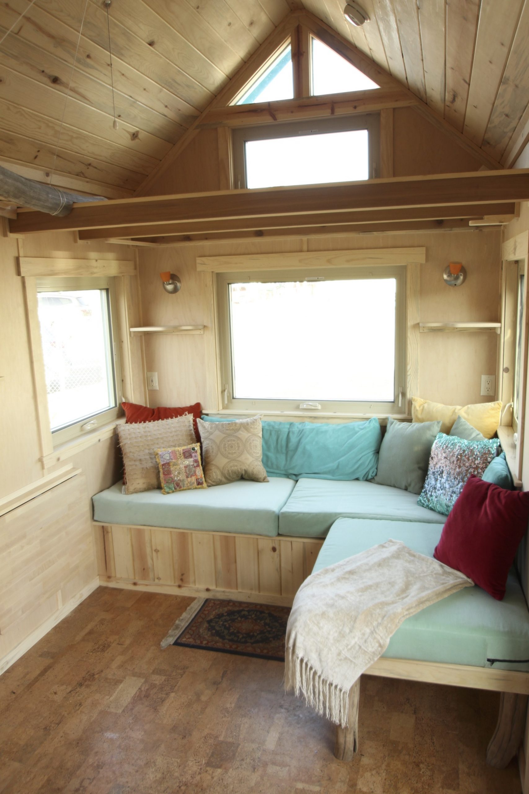 The SimBLISSity 26’ Judy Blue Eyes is one of the “Aspen” model Tiny Homes on Wheels custom designed and built for a delightful, colorful, young woman on her way to California to become a film maker.