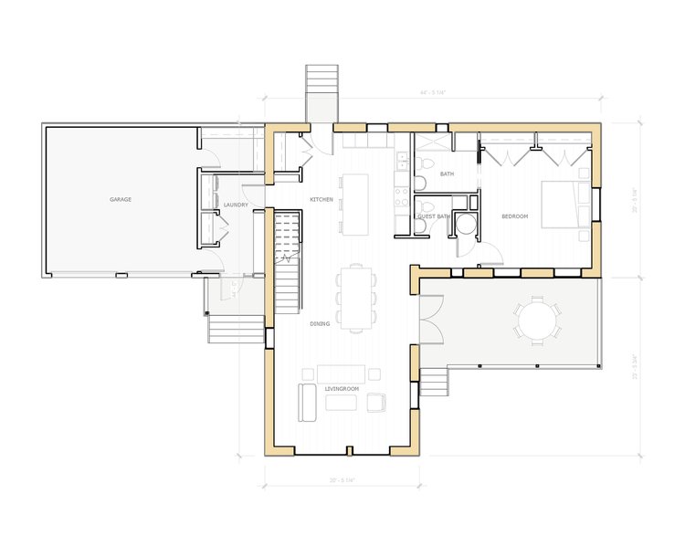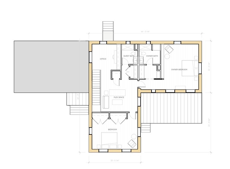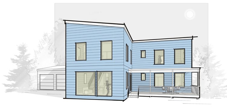 LINA is family ready in any setting. Utilizing B.PUBLIC Prefab’s standard walls, this 2-story home features ten-foot ceilings, is generous in public and private spaces and designed to be efficient and comfortable year-round. Imagine that with passive comfort the upstairs and downstairs will be equally comfortable with small systems and tiny energy loads.