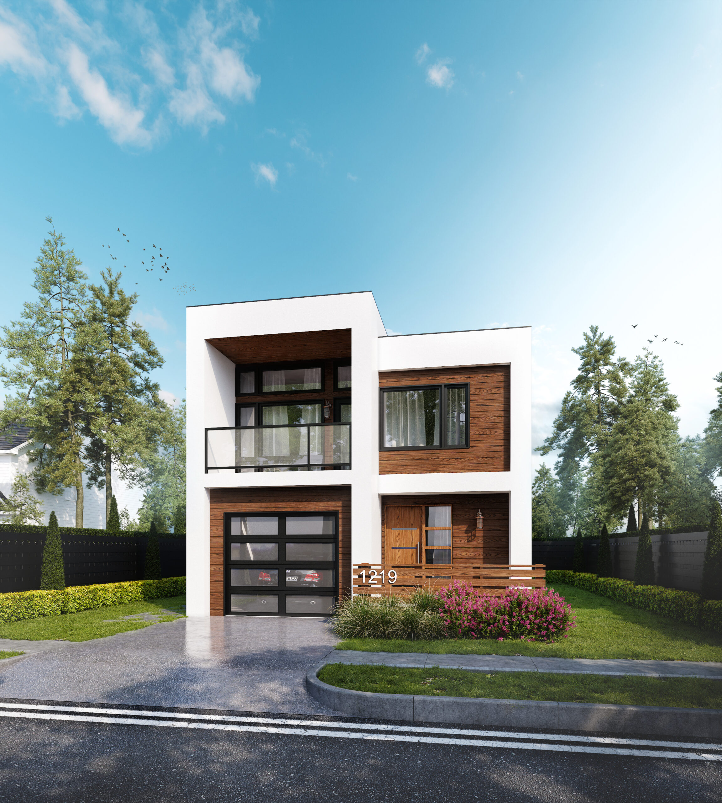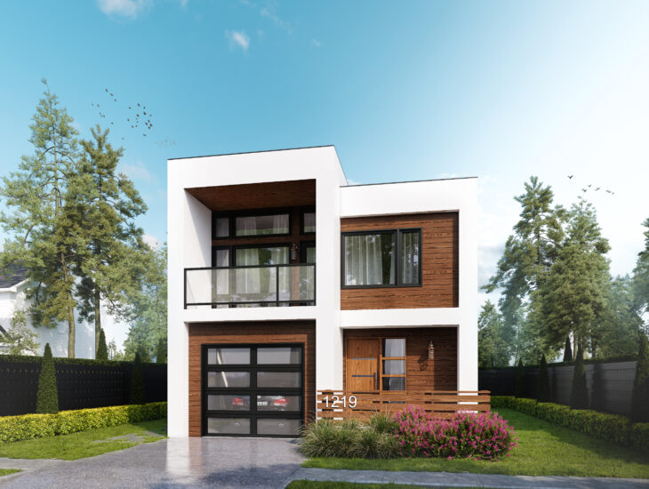 This modern contemporary home plan features a unique upper floor that is small yet appears quite open. This compact plan includes an attached garage and provides all the amenities of a large home in an efficiently designed small home. This plan proves that bigger isn’t always better!