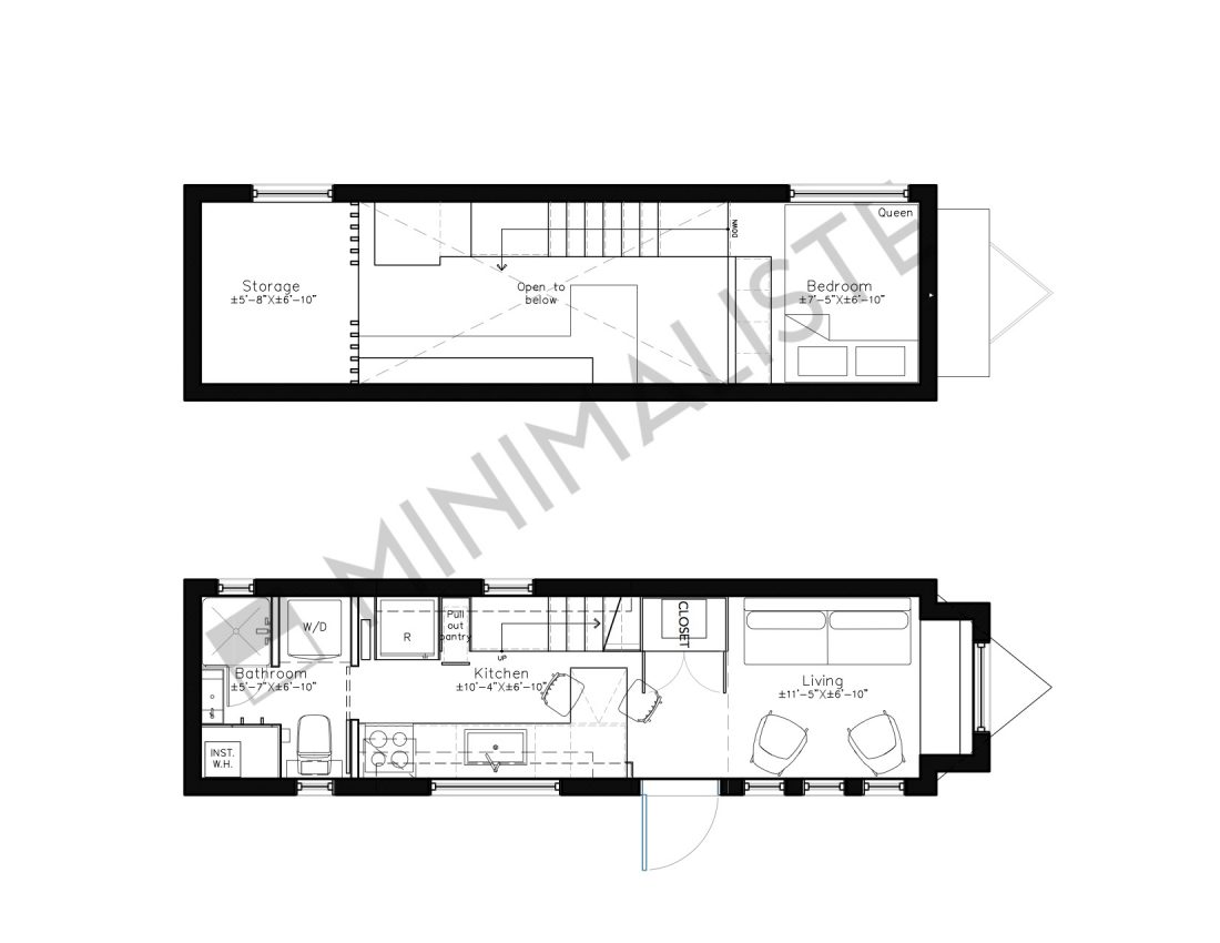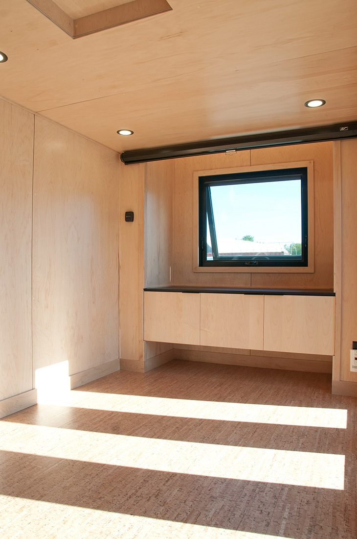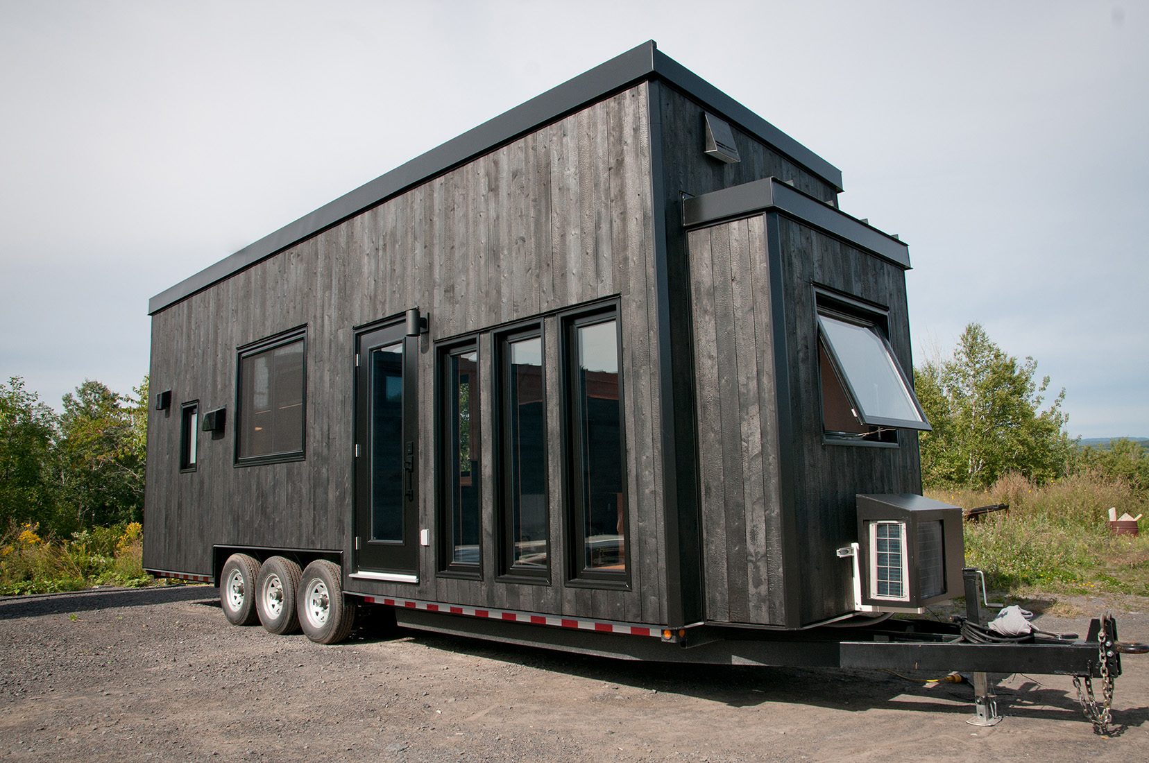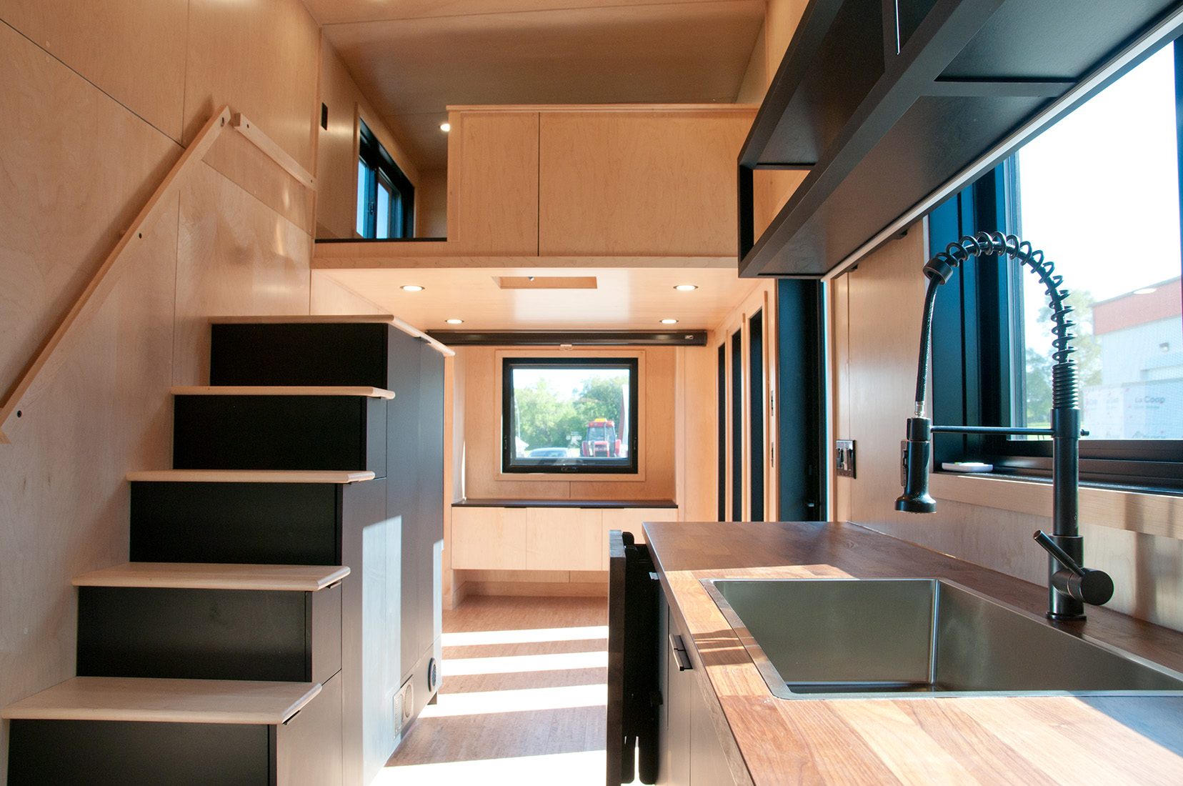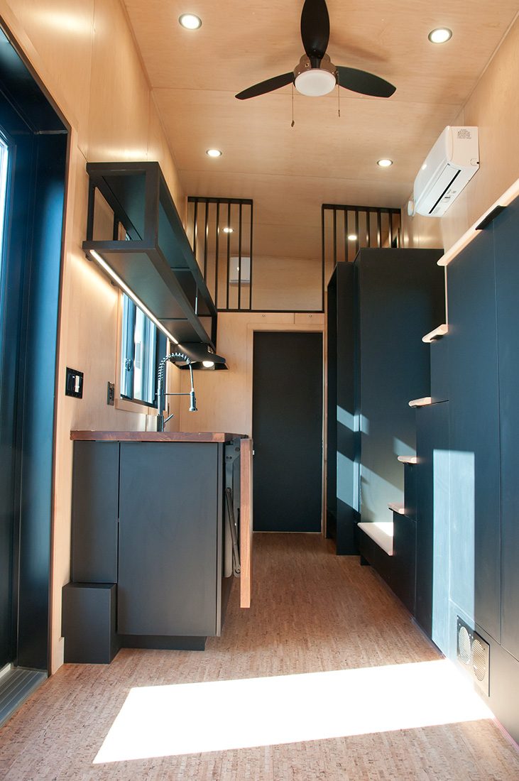 The Orme is the most recent 2 bedrooms tiny home on wheels we’ve created. It was designed for a couple living in Ontario, Canada, where winters are long and harsh. The tiny house runs on both electricity and propane, which makes it possible to connect the house with only a 30 amp cord. This model has a layout similar to the Ébène, but in a shorter and more narrow version. The exterior aspect is in line with our usual style, but the customers wanted to include a different style for the interior and we are quite pleased with the result!