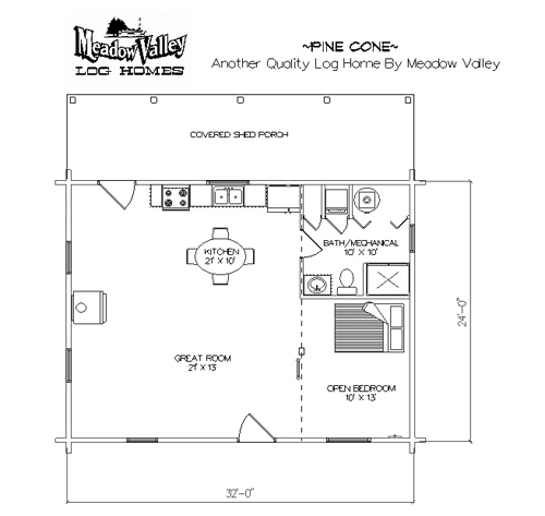 This plan combines all the necessities for a cozy week end get away cabin in an affordable small footprint. A totally open floor plan provides all the comforts for an enjoyable stay at the lake or in the woods. There is even an open loft for extra sleeping or storage, and a full length covered porch for relaxing outside out of the elements.
