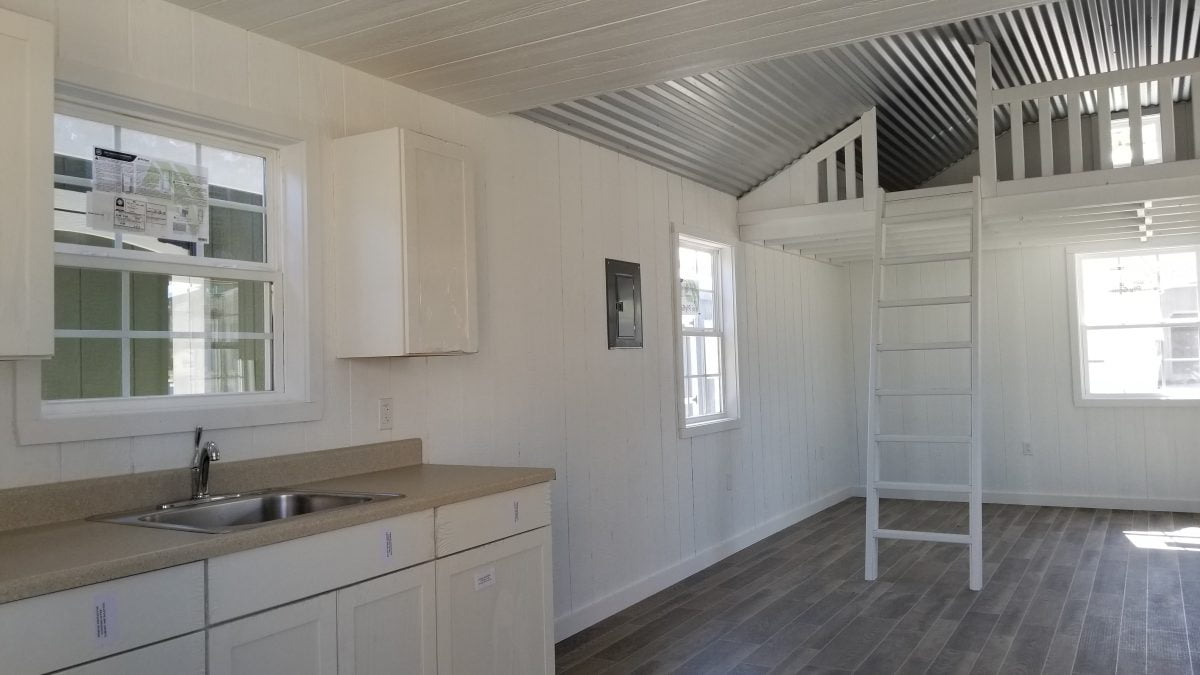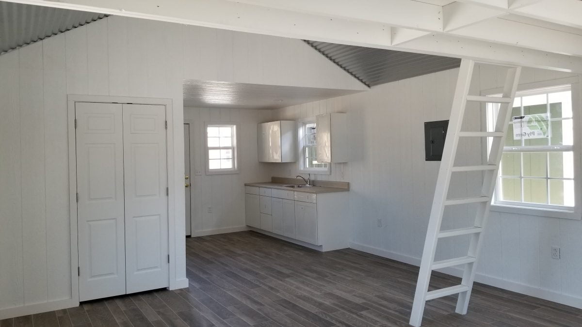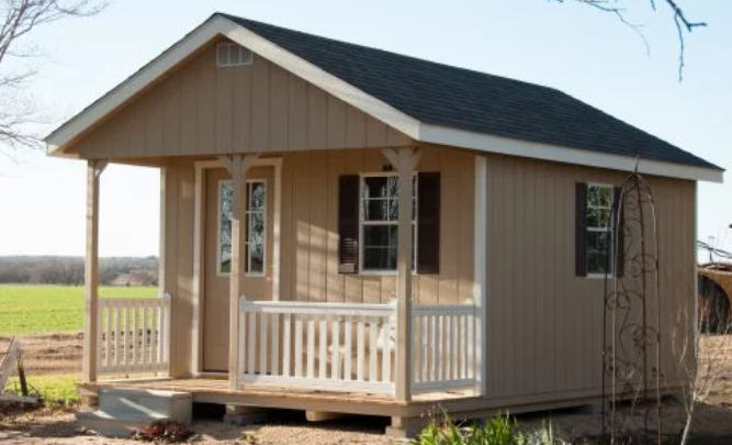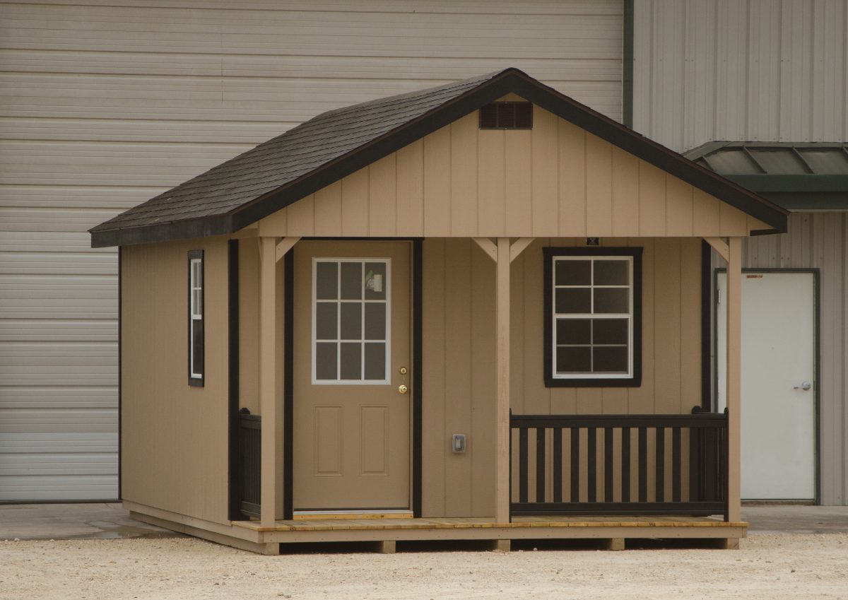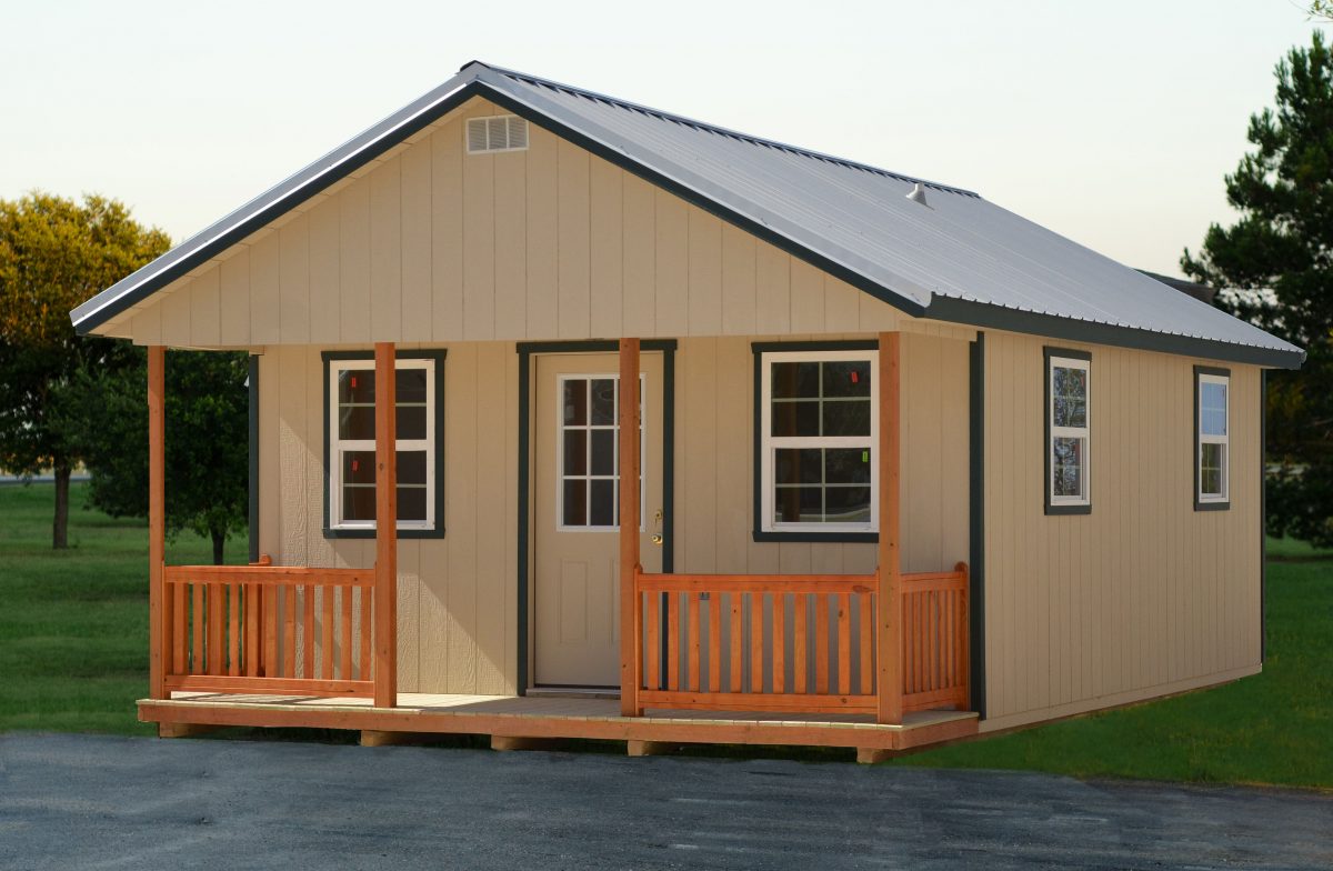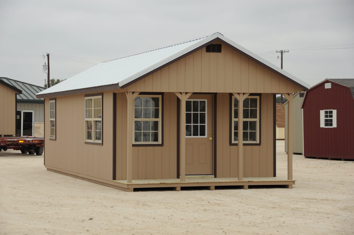 Modeled after our Classic-style portable sheds, our cabin-style portable buildings come standard with a 4′ porch. Perfect for a deer lease cabin, guest quarters, hobby area, budget-friendly house and much more!