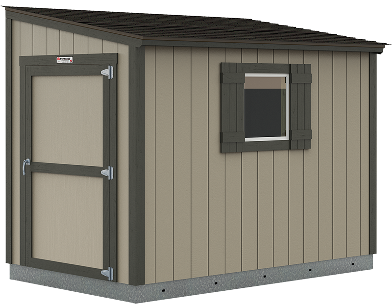 The lean-to has its roof peak along one of the side walls instead of in the center of the building. This style building is perfect for placing next to an existing structure or under a deck. Except for the roof, this building’s features are similar to the Premier Tall Ranch. Customers often ask to modify wall height and roof pitch to fit their specifications.