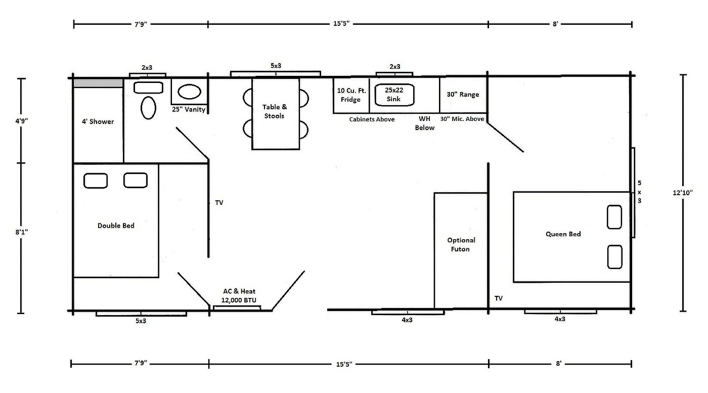 - All Plumbing Included (Pex Pipe for Water Lines & PVC Pipe for Sewer Lines, Water Lines are Inside)
