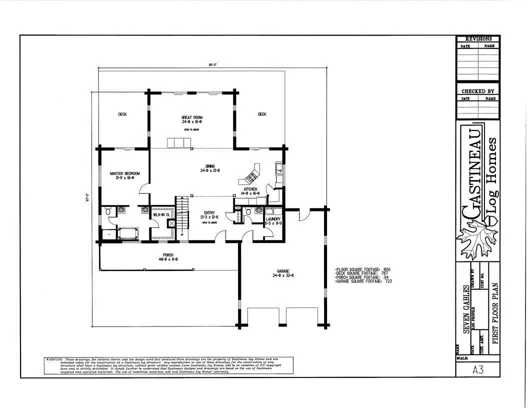 What a great floor plan! The Seven Gables is now open for you to tour at the new Gastineau Log Home model home center on Interstate-70 at exit 144 in central Missouri. The home is fully furnished and decorated so you can truly experience the beauty of a solid Oak log home. This is a versatile, well thought-out plan that is suitable for any size family. The large master suite on the first floor is a popular feature. The soaring living room with unique gable windows is perfect for the building site with a view. With a luxurious 3,012 square feet, it is suited for a family or retirement home.