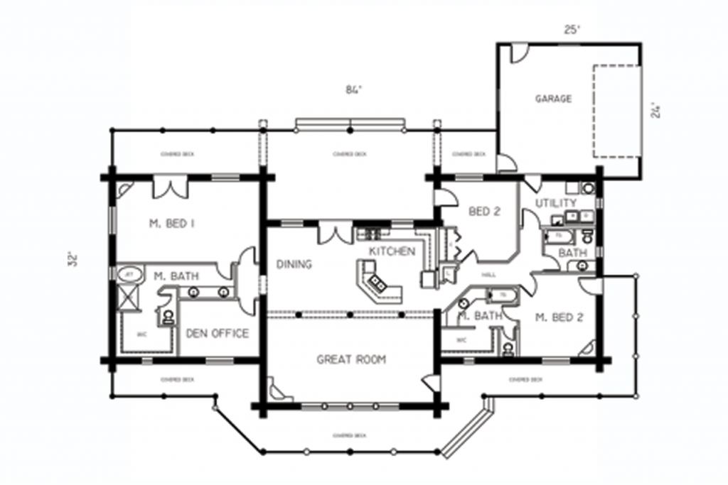 Named after the famous mountain range that runs through California, our Sierra model is a popular single story log home. It features 3 bedrooms and 3 full baths, a massive log covered porch and attached 2-car garage. Picture this beautiful ranch home on your homesite and make it a reality. This home is made for entertaining friends and family.