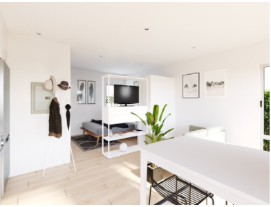 Our entry-level ADU model features a standalone backyard home or live-in work studio. Complete with modern finishes and comfortable living space, including a spacious studio bedroom, full bathroom, kitchen, and laundry nook. A versatile space, Solo is perfect for work, play, or rental.