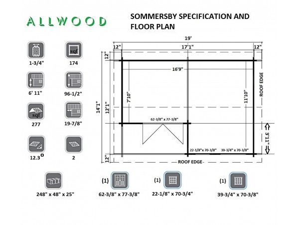 This 2015 U.K. and France Top Seller cabin kit for the manufacturer found fans quickly in the U.S. after its introduction here in 2016. There are plenty of reasons to like this model. Large windows allow an abundance of natural light inside and wide double doors will open for spring and summer to come in. One of the long windows opens. The cabin has sturdy 1-3/4″ dual T&G windblock Nordic spruce wall planks. The ends of those wall planks are straight which makes this model look like a hybrid between a classic styled cabin and a typical garden house. This timeless design will accommodate all kinds of styles and surroundings and can also be used as a guest house, home office, or retail space. Assembly of this cabin takes about 4 days with two handy adults. Do it yourself directions come with the kit in the form of numbered drawings and a parts list. Only minimal tools are needed. Please note that shipping only applies to the contiguous 48 states. Any required ferry trips or difficult terrain are the full responsibility of the buyer.