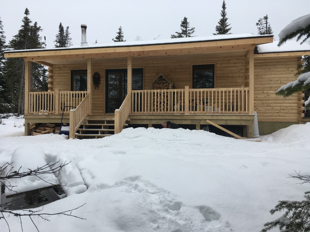 The Summit perfectly unites attractiveness and efficiency in a log home. Its large floor-to-ceiling window floods the interior with natural light.
