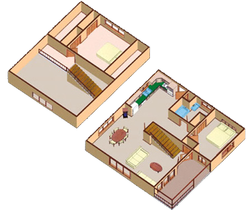 The compact floor plan of two bedrooms, one bath, ample living area and cathedral ceiling enables you to make the most of all space in the Summit.