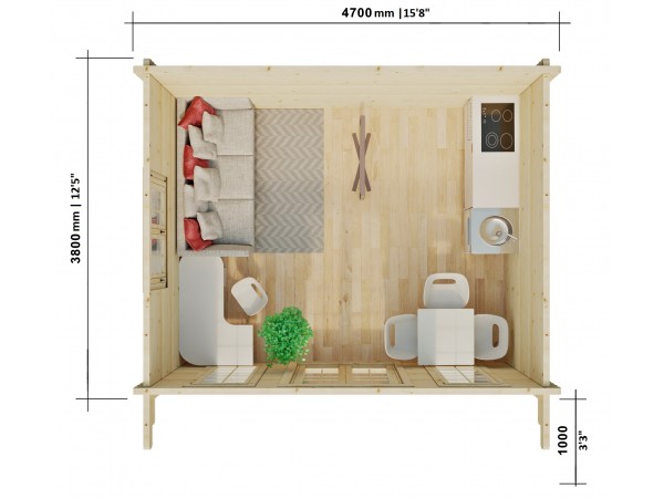 Allwood Sunray is a popular kit cabin made from high quality solid Nordic pine wood. Aptly named Sunray, this model was designed to allow abundant natural light inside. This model may have a lake/beach house written all over it but Sunray also makes an elegant guest house, granny flat or even a stand-alone retail building or a cafe. With thicker than usual (2-3/4″) wall planks, Sunray is very energy efficient and well suited even for colder climates. Assembly of this solid wood cabin takes about 4 days for two adults. Do it yourself directions come with the kit in the form of numbered drawings and a parts list. Only minimal tools are needed. Please note thatshipping only applies to the contiguous 48 states. Any required ferry trips or difficult terrain are the responsibility of the buyer.