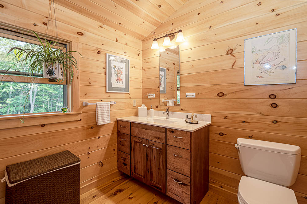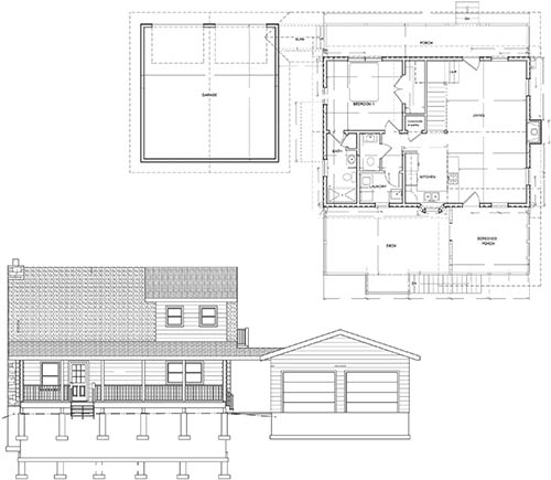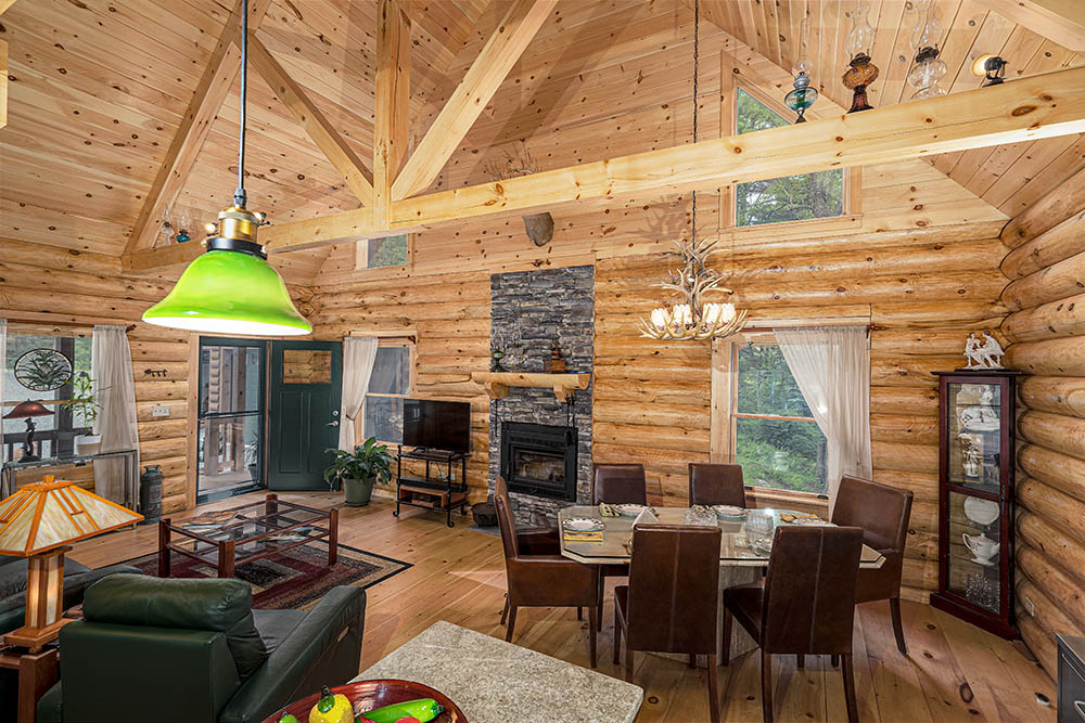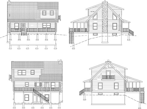 The Teton is a classic log home design that Estemerwalt has built many times. This efficient, two-story floor plan has a striking exterior enhanced by a spacious covered porch and large shed dormers on the roof, front and back. The front entry leads into the main living area, which includes a great room, kitchen, pantry, half-bath, laundry room, and master suite. A hearth in the center of the great room will be the gathering place to make memories. Upstairs is the second bedroom, with full bath and ample storage area. In the walk-out basement is the third bedroom and third full bathroom, with plenty of storage as well. The Teton will put a smile on your face every time you arrive home.