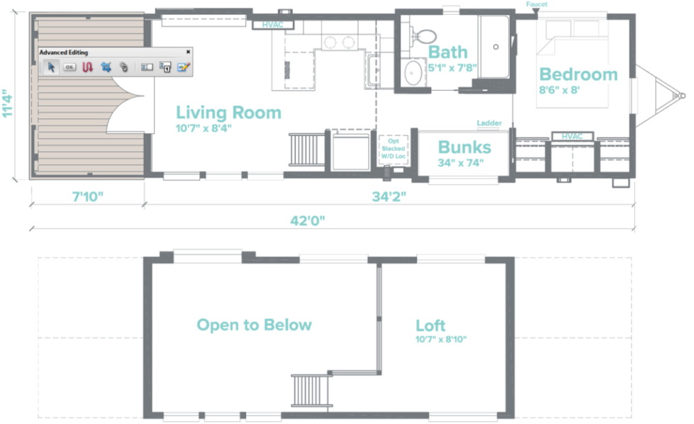The Alexander tiny cottage is perfect for your next family vacation or weekend adventure. With room from six to eight, you won’t have to worry about leaving your four-legged friends behind. The Alexander’s thoughtful, farmhouse design features built-in closets, bunk beds and a wide storage ladder leading into the spacious sleeping loft.