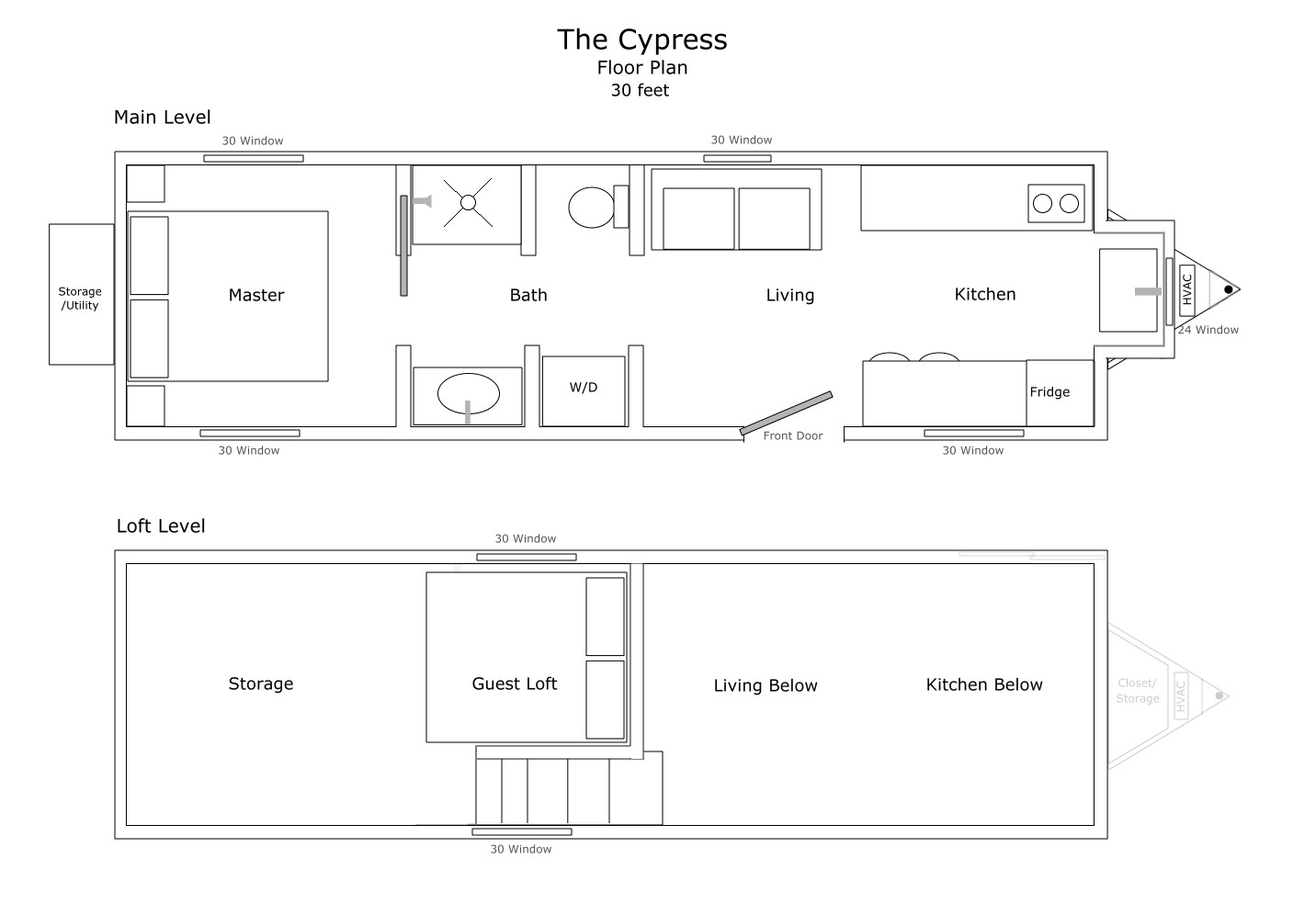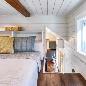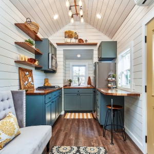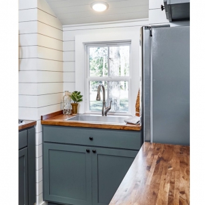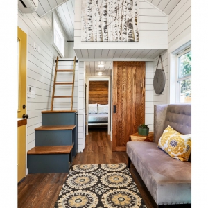The Cypress tiny house is built with a life-long home in mind. Its layout is open, spacious, and functional.