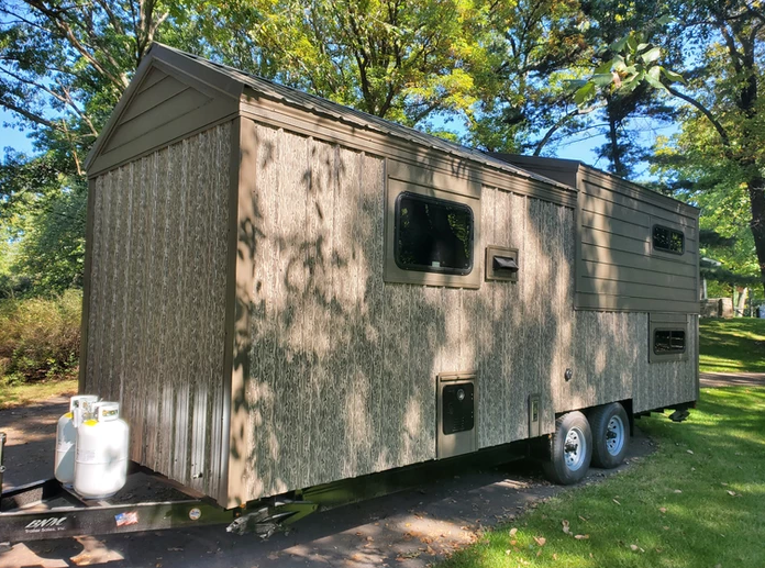 Did you just get thrown in the “dog house?” If so, this model is perfect because you have a place to go!! Off-Grid living or just taking a trip across the country. There are 4 bunks that can be converted in to 2 kings size beds or just one bed with storage above/below. This unit had the fresh and gray tanks above the floor so it can be used in the harsh winter months. There is an inverter that will power the 110 volt appliances and 12 volt too