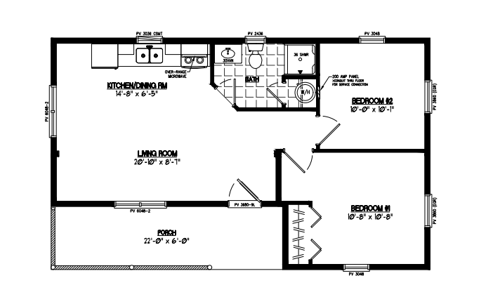 Along with the 6′ deep corner porch, the Frontier features an insulated front door, insulated windows, great room with cathedral ceilings.