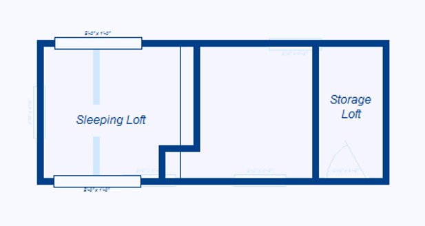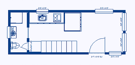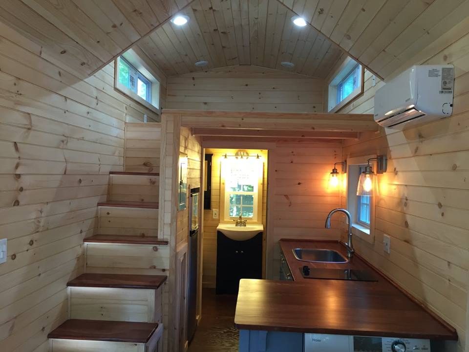 This model offers an eat-in galley kitchen with a refrigerator, washer dryer combo unit and a 2-burner stove. The 3/4 bath is surprisingly spacious with added storage. Full staircase with storage underneath lead to a spacious sleeping loft. Heat, A/C and another loft for extra storage add to your comforts.