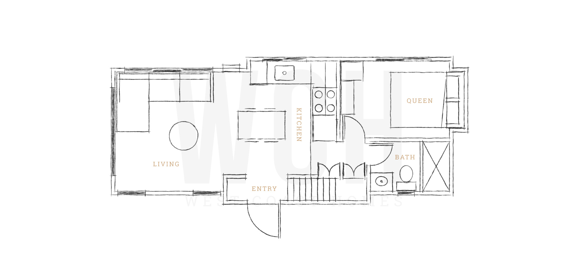 Our Salish model is bright and airy thanks to many windows in the living room, providing great panoramic views of the surrounding areas. It features 10’ ceilings in the living room, a L-shaped kitchen, and a movable island/table combo. An open loft is nestled above the bedroom and bathroom and furthers the unit’s airy feel. The loft can be used for a kids’ play area, kids’ bedroom, or a guest bedroom. The steeper staircase allows for plenty of storage under the stairs, and room for a washer/dryer combo if needed.