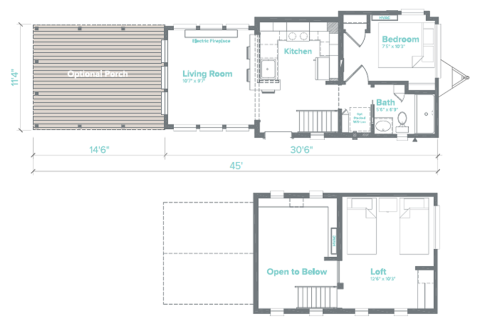 The Sedona Tiny Cottage combines rustic, farmhouse style with modern amenities to deliver on traditional design and quality. This special floor plan presents 24 windows in an effort to bring the outdoor living experience inside. The Sedona’s open spaces and clear lines of sight create an inviting, cozy atmosphere.