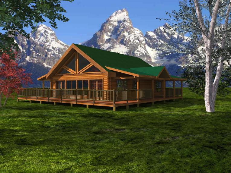 The Walland Pass log home is an outdoorsman’s dream! The highlight of the Walland Pass log home plans are its porches and decks on three sides, making this the ideal place for a summer cook-out with your family, or for a quiet night relaxing on the porch. With the impressive, triangular-shaped windows overlooking the deck, the Walland Pass is quite an attractive sight!