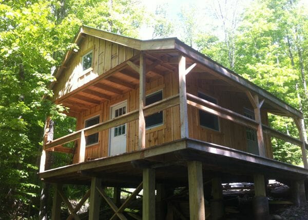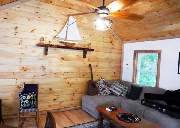 This inviting one room shanty offers an open floor plan and loft that extends over the porch. Pool house, home office, hunting cabin; the options abound with this design. Consider upgrading to four-season for a sanctuary you can escape to all year round.