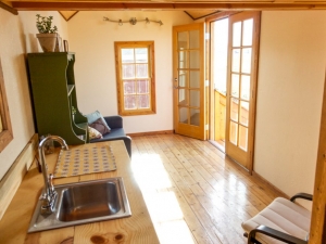 This versatile tiny house could also work well as a backyard office, temporary guest space, meditation or yoga room, cabin in the woods or by the river, crafter’s cottage, writing retreat, artist’s studio or even an art or photography gallery.