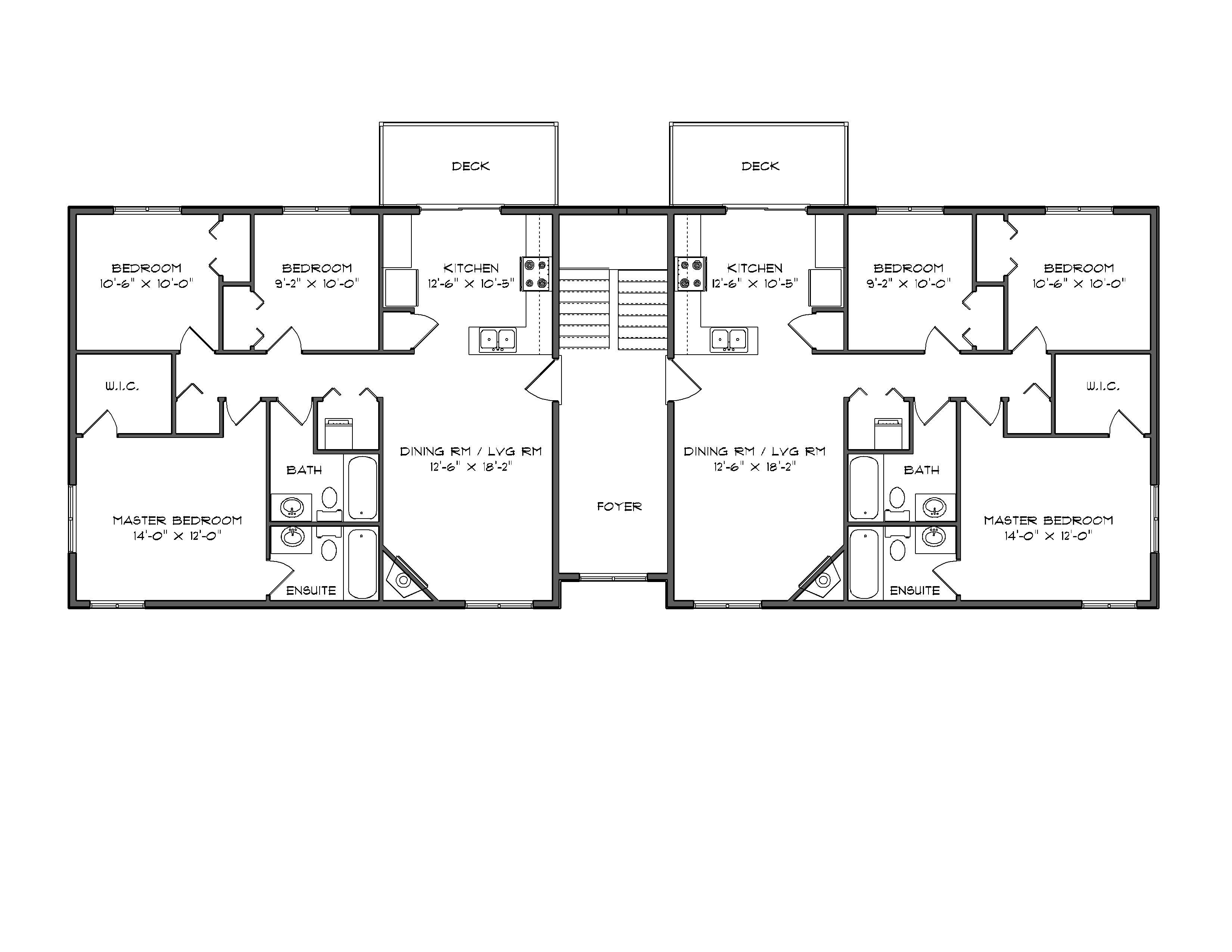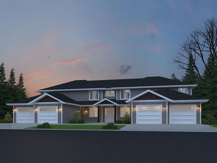 This multi-family house plan features four housing units designed for functionality. A common foyer and two units on each floor making your three bedroom, two bathroom home conveniently all on one level. Each unit has 1,015 square feet and is complete with an individually separated garage. This apartment design is ideal for use as condos or investment property.